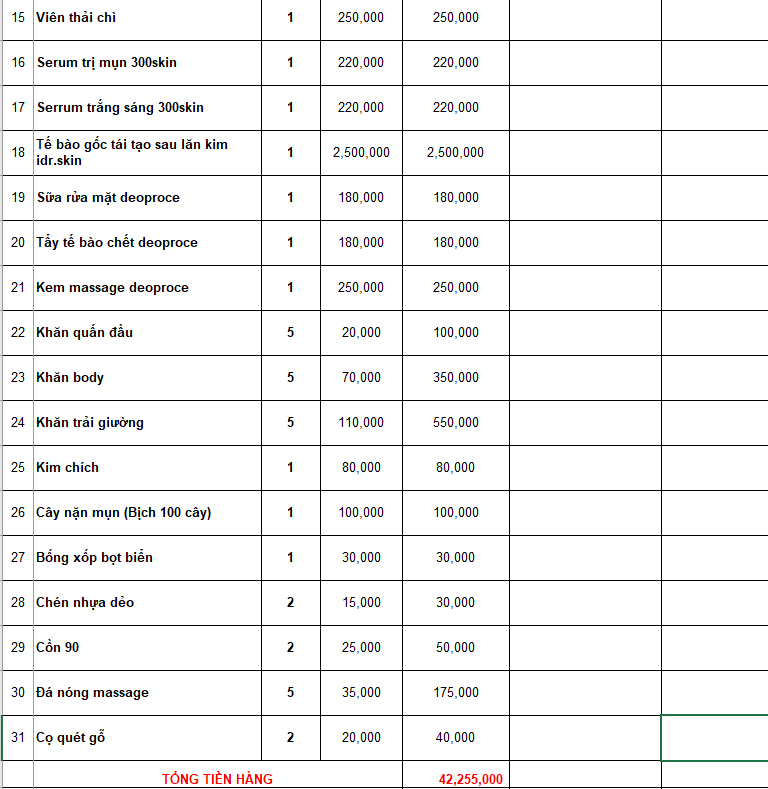 Setup spa cơ bản tắm trắng giảm béo quy mô 3 giường chi phí: 42.280.000 VNĐ