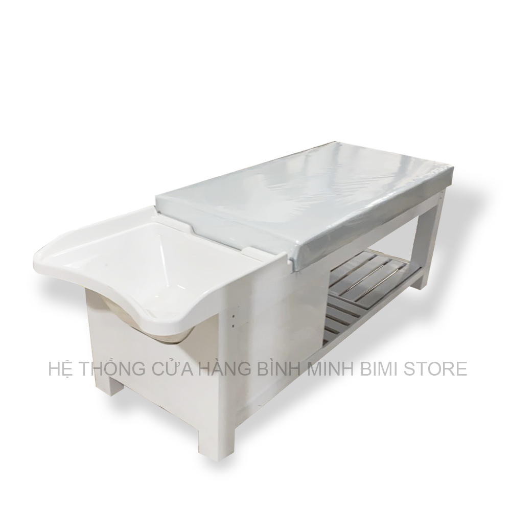 Giuờng gội đầu dưỡng sinh 2in1 - M5 (Khung trắng - Nệm trắng) Bồn nhựa trắng