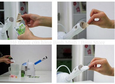 ** Thảo dược - Bỏ trong 1 gói lọc để tránh xác thảo dược rớt vào trong máy. Sau đó bỏ gói thảo dược vào ngăn chứa.