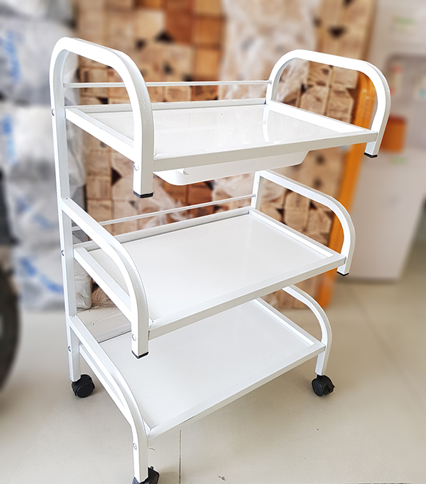 Xe đẩy sắt sơn tỉnh điện mặt gỗ AH1 với thiết kế sắc xảo, sang trọng đẹp mắt bởi khung sắt sơn tỉnh điện và sử dụng 3 tầng đều mặt gỗ chắc chắn. Xe thiết kế với chiều cao chuẩn với giường nên dễ dàng thao tác trong quá trình làm đẹp, chăm sóc da, để các dụng cụ ở phòng khám. Xe đẩy được tháo rời, dễ dàng lắp ráp và vận chuyển.